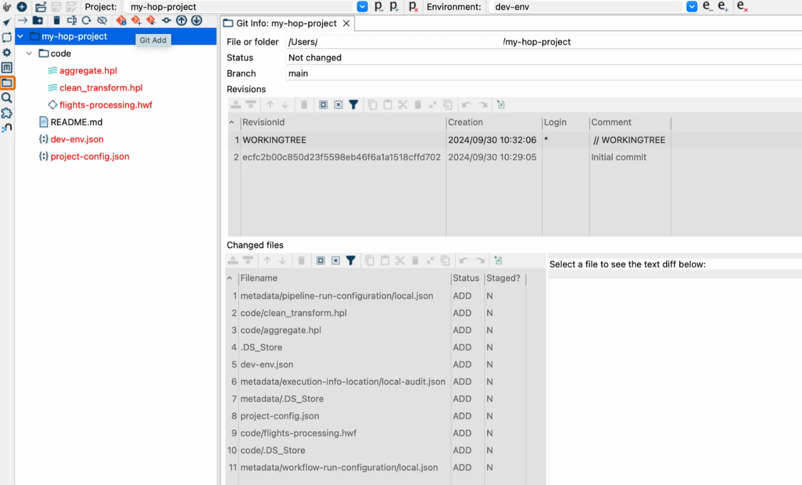 Using Git within Apache Hop’s GUI is a fantastic option if you prefer a visual interface. The integration helps you: